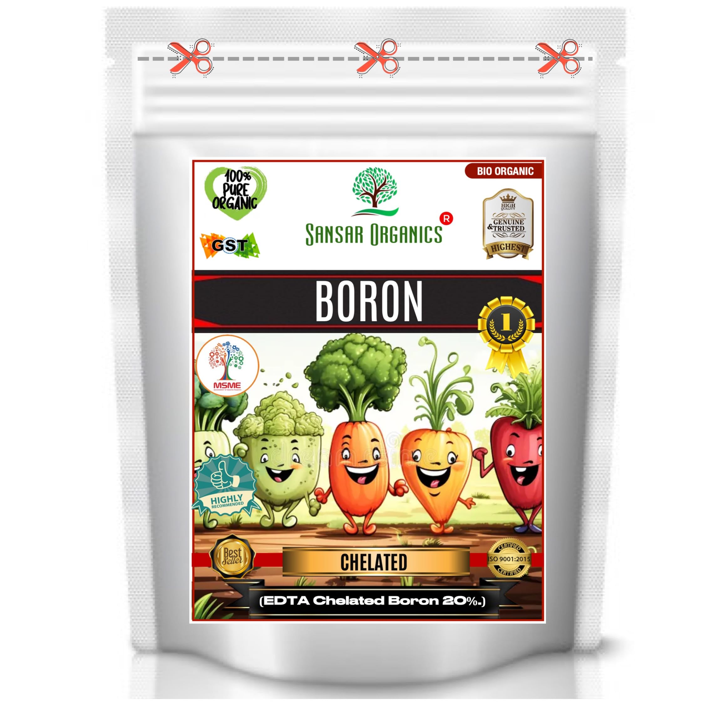 Chelated Boron - 20% EDTA is a premium organic fertilizer designed to provide plants with a highly available form of boron an essential micronutrient crucial for their overall growth and development. With 20% Boron content this formulation uses the EDTA (Ethylenediaminetetraacetic Acid) chelating agent to enhance the absorption and mobility of boron in plants. Boron plays a key role in cell wall formation the synthesis of important enzymes and the regulation of plant hormonal processes. This fertilizer helps correct boron deficiencies promoting stronger healthier plants with accelerated growth. Ideal for a wide range of plants including vegetables flowers fruits trees and ornamentals.