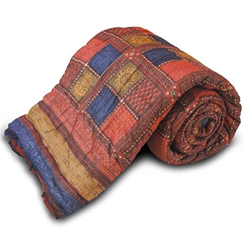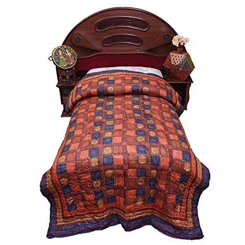 One World famous Jaipuri Single Bed Cotton Razai (Quilt) in traditional Sanganeri Hand Block Floral Gold print of Rajasthan. These good looking fluffy hand-made Indian Razai or quilts are a specialty of Jaipur.