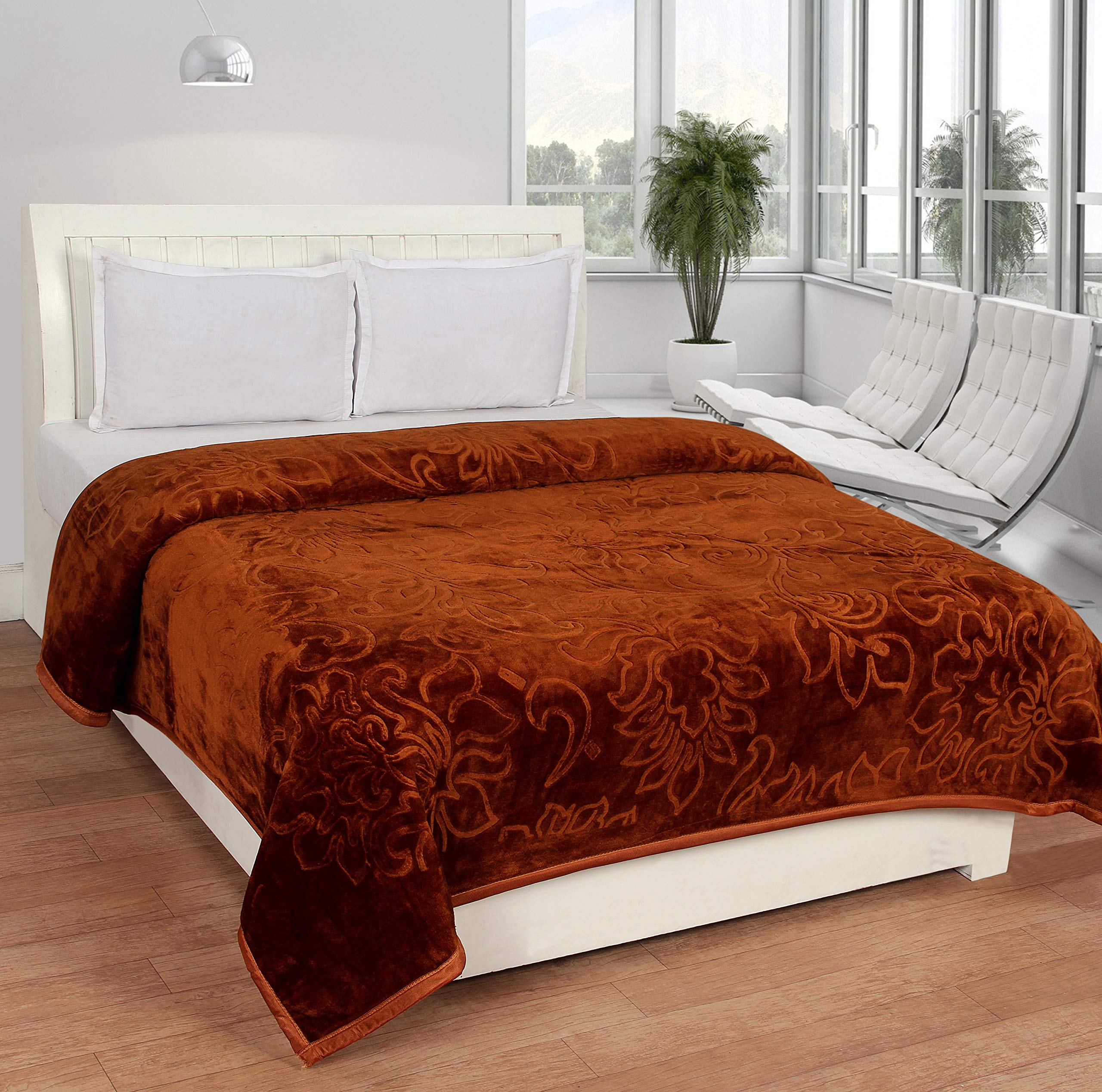 Little India Soft Embossed Floral Microfibre Blanket (Single Brown)