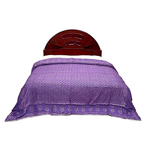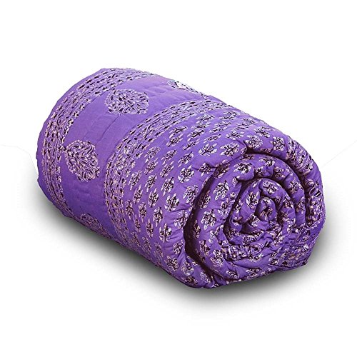 This stunning handmade AC comforter combines spontaneous floral pattern in black and golden color on beautiful purple base to create a gorgeous comfort in winter. Assembled from traditional Jaipuri printsfrom booty prints and scrolling florals to petite block-print fancy borderit is made by master artisans of Jaipur. World famous Jaipuri Pure Cotton Double Bed Comforter (also populary called as Dohar) in traditional Sanganeri Hand Block Print of Rajasthan. The Comforter is a 3-layered cover with middle layer of high grade flannel sheet between two layers of cotton fabric. Being light weight these are ideal during travelling. Jaipuri comforters are characterized by their incredible feather-weight lightness softness and warmth. These beautiful Dohars are a specialty of Jaipur.