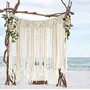 The Decor Hub Fabric Striped Curtain Macrame Door Curtain | Large Wedding Backdrop Wall Hanging Tapestry White | Macrame Window Curtain | Outdoor Backyard Party Home Deco 85X110Cm Ivory