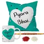 Christmas Vibes Pyara Bhai Rakhi Gift Hamper Combo - 4pc (1 Cushion 1 Mug 1 AD Rakhi and Roli Chawal) Rakhi Gift for Brother Rakshabandhan Gift Rakhi Gift for Bhai