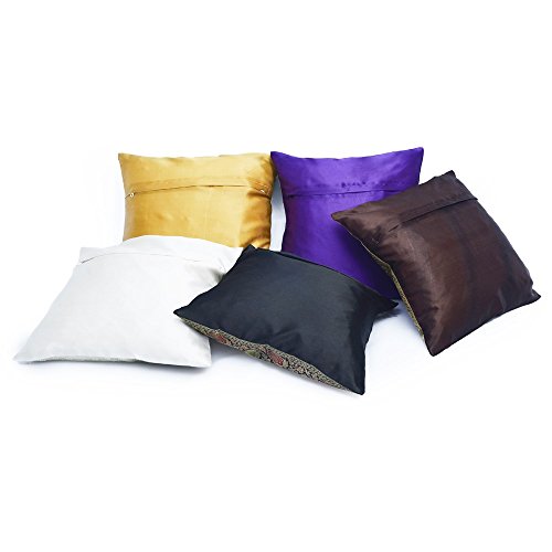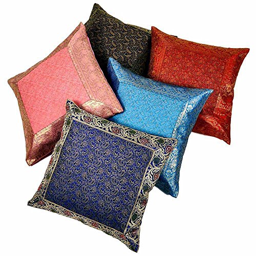 Little India Zari Hand Embroidery Work Silk 5 Piece Cushion Cover Set - Multicolor (DLI3CUS437)