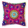 SUZANI EMBROIDERY Blue Floral Suzani Embroidered Cushion Cover Cotton Sofa Decorative Cushion Pillow Cover Cushion Case 16" X 16" Inch