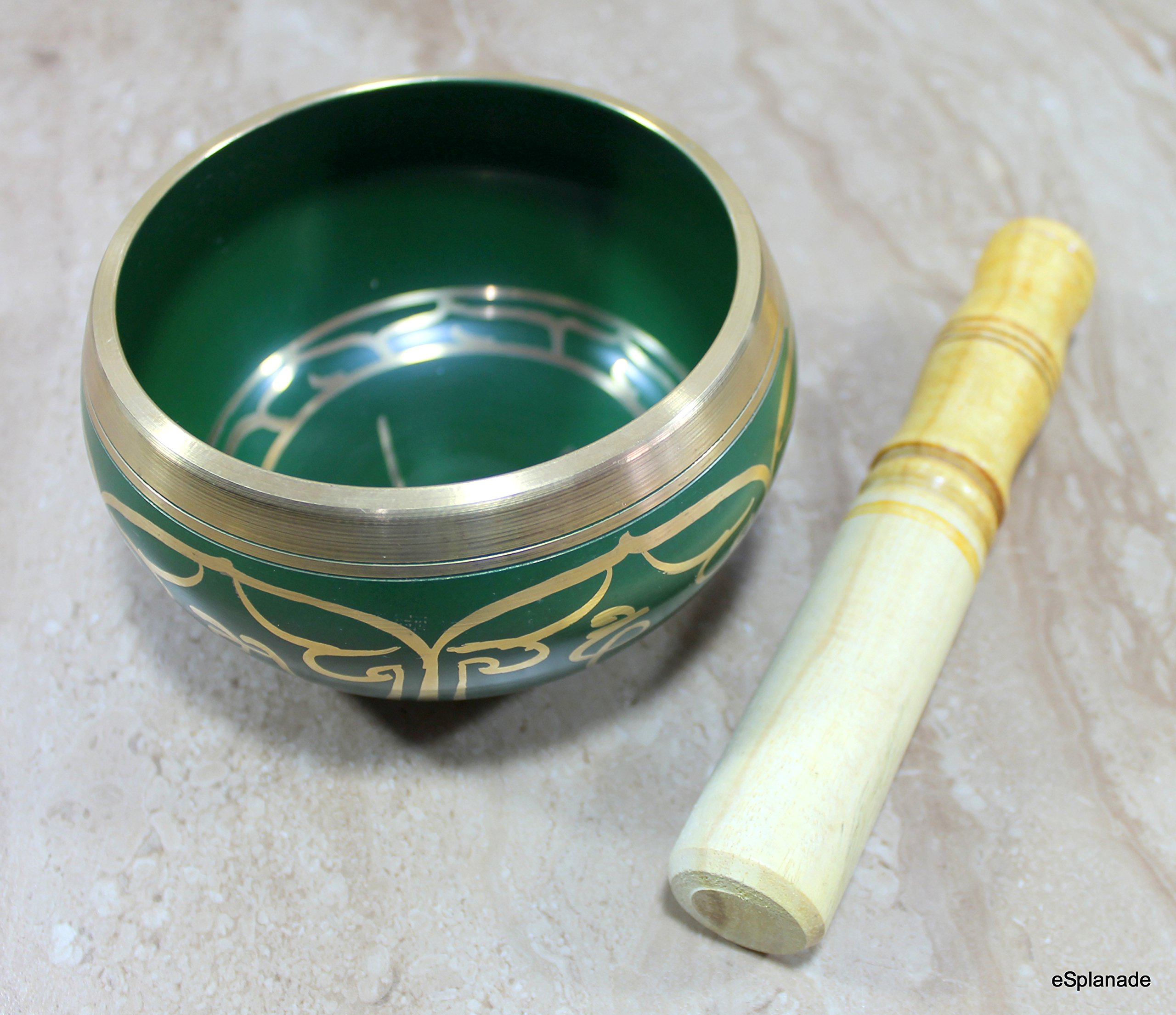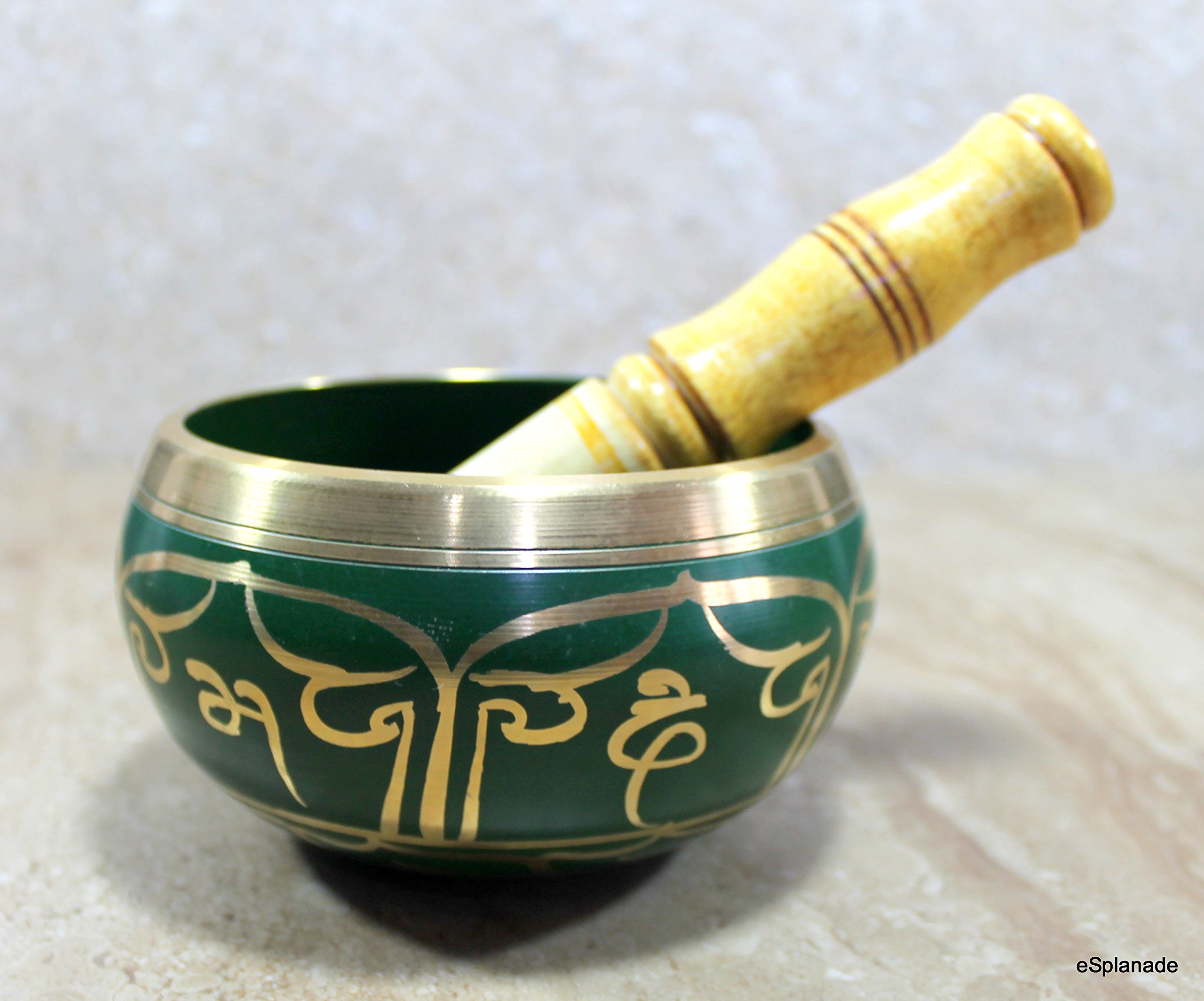 SPN-BNB85C SPN-BNB85C SPN-BNB85C This Tibetan singing bowl is made to be a decorative design that will add to the decor or ambience of a room when it is not in use. Dimensions: Size: 5 Inch Diameter: 3 Inch high Material: Metal Alloy. Package Contents: Singing Bowl and Wooden Striker Stick. Singing Bowls produces sound that is calming peaceful harmonic and soothing to the ears. Excellent choice for meditation and relaxation. SPN-BNB85C Singing Bowl Tibetan Buddhist Prayer Instrument With Striker Stick EASILY PLAY MESMERIZING TONES FOR HOLISTIC HEALING â Healing processes are initiated through entraining our brainwaves to synchronize with the perfect resonance of the bowls. You can easily play peaceful and mesmerizing tones on this unique singing bowl to create a type of energy medicine that reduces stress and promotes spiritual mental and physical healing. EASY TO USE & CARRY: 3 inch diameter fit your palm perfectly. Simply use the wood stick gently knocking the singing bowl to make this special sound wave to bring balance and calm to your day to day life in simple effective and enjoyable way improve yoga mediation and heart chakra clearing. SPN-BNB85 SPN-BNB85 About Us Esplanade presents its experience Store in Bangalore. Retailing and displaying Wall Decors Wall Mirrors Home Fountains Gifting Ideas Hindu/Jain/Buddha/Christian God Idols Home Decor Items Wooden Puzzles Wooden Toys Educational Toys DIY/Craft Toys and many more We at StonKraft are a group of enthusiasts having passion for Indian handmade products and arts. We sell only Made in India products. We personally design most of the articles get the craftsman for crafting and retail them in the International market through popular e-Commerce platforms.