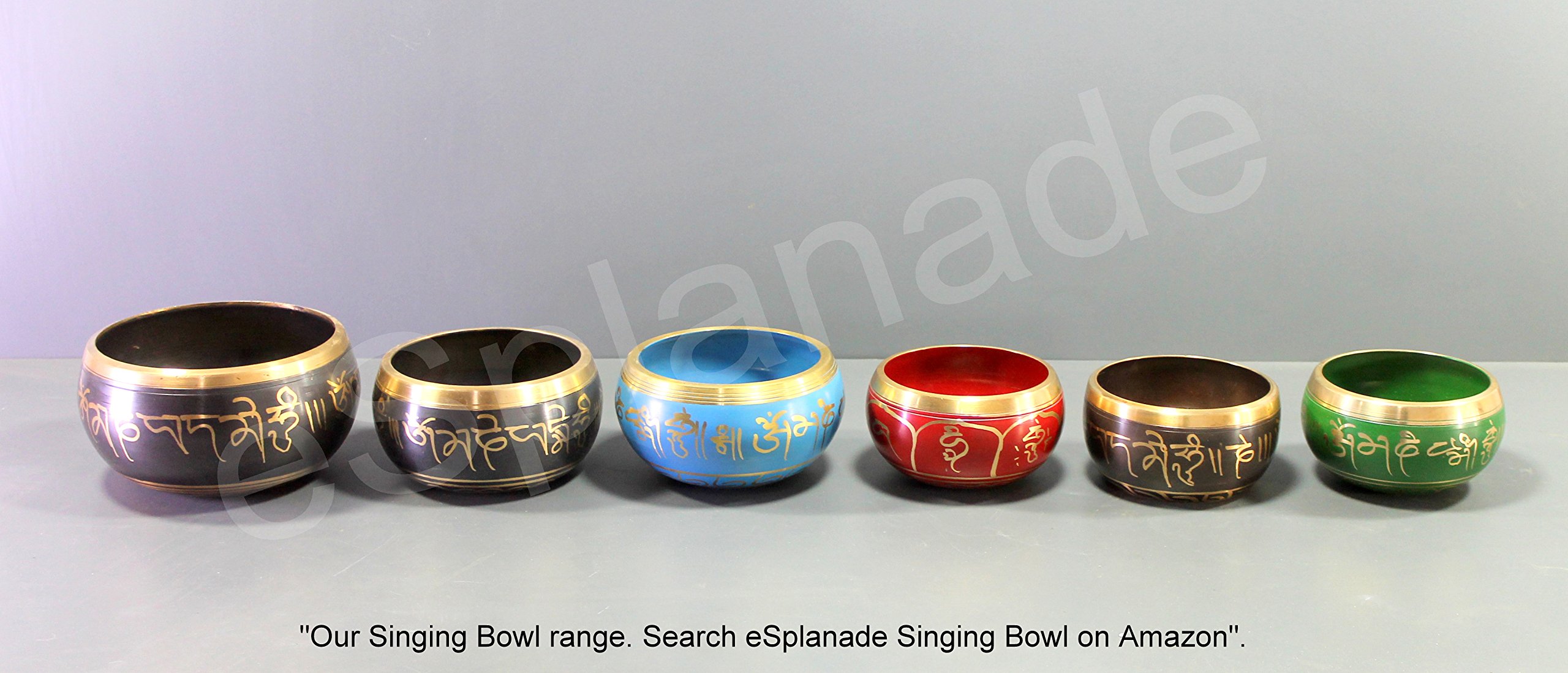HomeHomeMusical InstrumentsSinging BowleSplanade - 6 inches - Singing Bowl Tibetan Buddhist Prayer Instrument With Striker Stick | OM Bell | OM Bowl | Meditation Bowl | Music Therapy