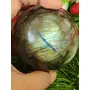 Crystal Cave Exports Blue Fire Rainbow Labradorite Stone Spectrolite Sphere Orb 308GM For Promotes Psychic Abilities Strengthens Stimulates imagination Calmi Weight :- 308Size :- 60 MM Labradorite Associations Chakras - Throat Chakra Third Eye Chakra Crown Chakra Zodiac - Leo Scorpio Sagittarius Planet - Uranus Element - Water Typical colours - Pale green blue colourless grey-white: with iridescent blue or gold flashes Healing with Labradorite ♥ Transformation ♥ Promotes psychic abilities ♥ Strengthens our will ♥ Stimulates imagination ♥ Calming A stone of transformation Labradorite is a useful companion through change imparting strength and perseverance. It balances and protects the aura raises consciousness and grounds spiritual energies. Excellent for strengthening intuition - promoting psychic abilities. Powerful in revealing the truth behind illusions Labradorite banishes fears and insecurities and strengthens faith in the self and trust in the universe. It stimulates the imagination and calms an overactive mind developing enthusiasm and new ideas.