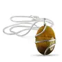 Reiki Crystal Products Tiger Eye Natural Stone Pendant Wire Wrapped Oval Pendant Semi Precious Stone Pendants for Unisex
