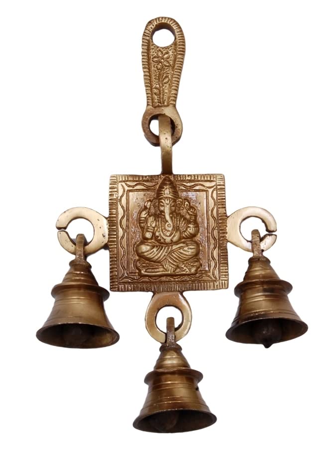 JAIPUR STONE WORK Lord Ganesha Bells Brass Showpiece (9 cm x 3 cm x 15 Brown)