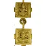 A temple inspired brass door hanging with the religious icons of Lord Ganesha and Goddess Lakshmi embellished with tinkling bells. This has been created by the metal craftsmen from Uttar Pradesh, India.