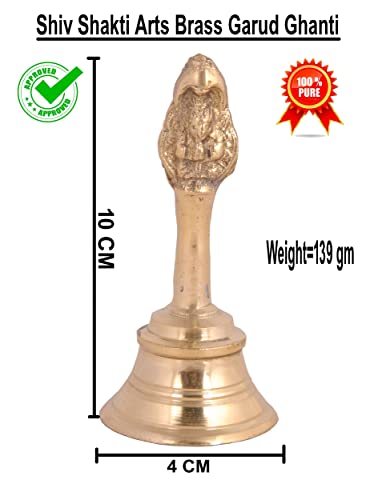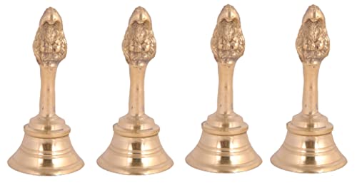 Shiv Shakti Arts® Pure Brass Garud Ghanti | Brass Ghanti|Brass Bell Ghanti for Pooja| Height-4 Inch (Set of 4)
