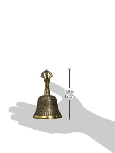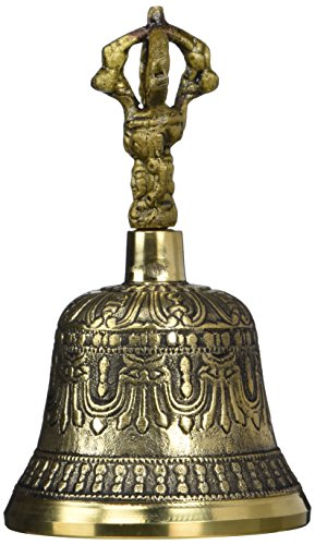 The dorje and bell are the primary ritual tools of Tibetan Buddhism. Always kept together they represent many layers of intricate symbolism and meaning and are used in almost all Tibetan ritual ceremonies chanting and magical operations. The dorje and bell represent the masculine and feminine principles in the cosmos and in the individuals energy body. The dorje is always held in the right hand and the bell in the left as these are the sides of the right and left channels in the body. The bell is about 5 inches high. Quality Tibetan style bronze made in India.