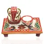 CHURU SANDALWOOD CARVED Marble Chowki Ganesha with Diya for Pooja (6X4 Bajot)