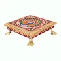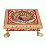 MEENAKARI ENAMEL PRODUCTS Golden meenakari Wooden Pooja bajot All Purpose chowki Peacock Design for Pooja ghar Gold(6" X 6" INCHES)