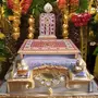 Dazzling gold finish: The chowki boasts a stunning gold finish enhancing its beauty and creating a captivating focal point during prayers and religious gatherings.