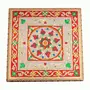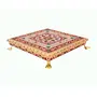 Introducing the RAJASTHANI HAAT AND CRAT Meenakari Pooja Chowki from which may be used in any house or place of business. The 10" x 10" Multicolor Small Chowki/Puja Bajot has a place for displaying idols candles and other ornaments. The wooden chowki's Meenakari artwork displays the traditional Rajasthani art form. The eye-catching hues and patterns instantly grab attention and improve the aesthetic appeal of any space. The chowki is a practical alternative for those who appreciate constantly changing their decor because it is lightweight and portable. This chowki provides a utilitarian purpose in performing pooja rites in addition to its visual appeal. During festivals and significant events it can be used to perform aarti and do pooja thalis. precise in its construction