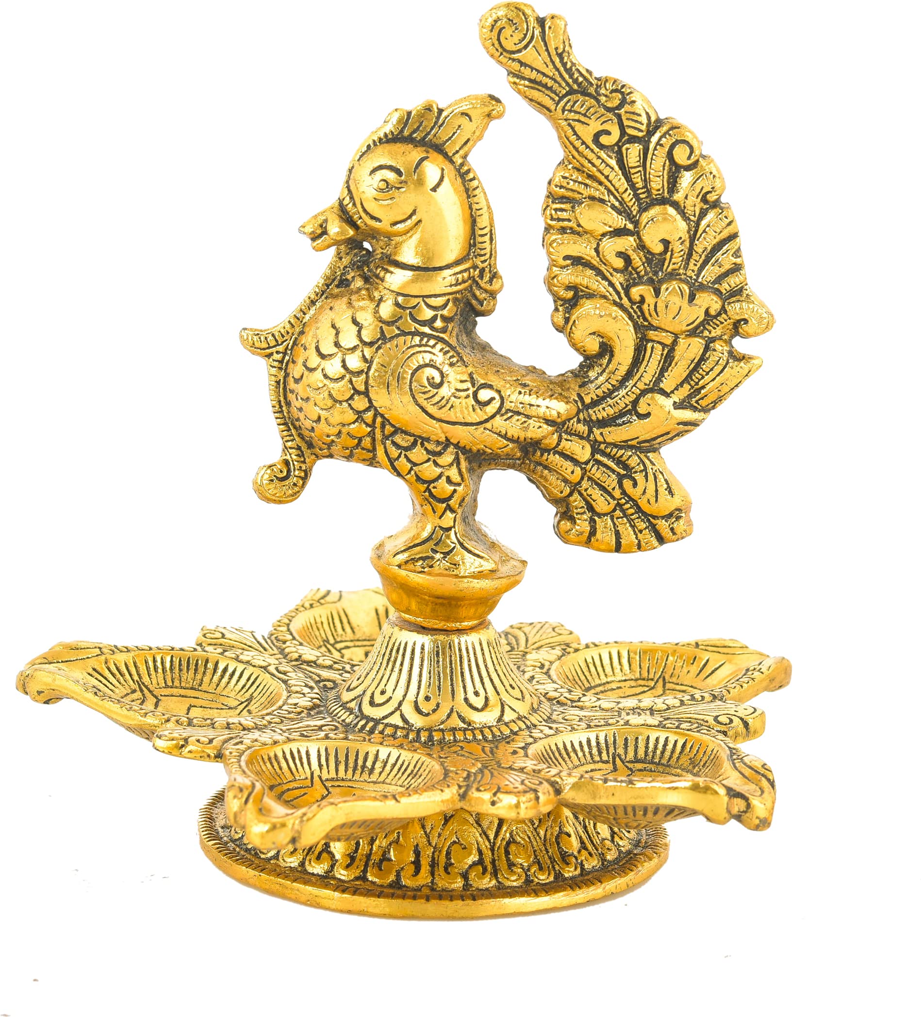Handicraft Panchbatti Peacock Diya Panch mukhi Diya with Peacock Aluminium Table Diya