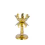 Brass Lotus Shape Pillar Diya Oil Lamp Stand- Traditional Diya for Diwali Puja - Diya with Velvet Blue Box Deepak for Temple Gifts Pooja Articles Decor ( 1 Pcs)