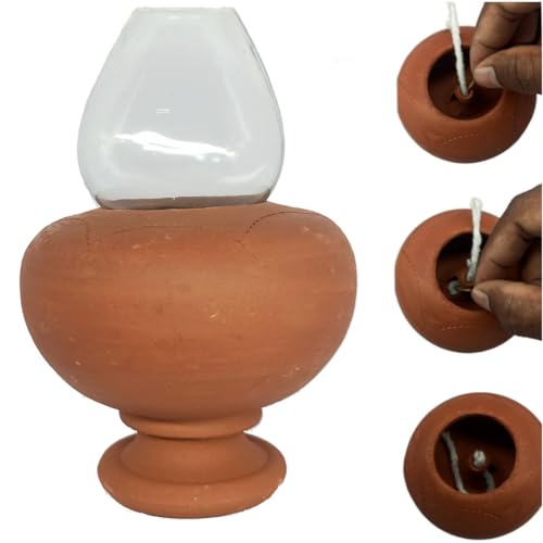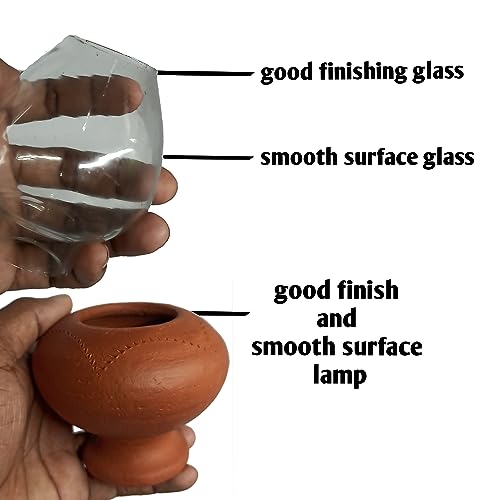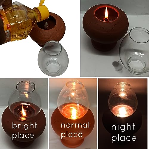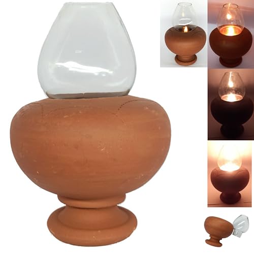 Chimney lamp Big | Terracotta Clay Glass Oil Lamp (Pack of 1 lamp)..