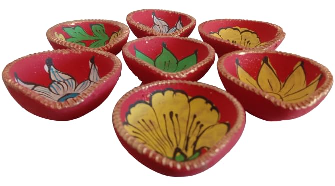 Handcrafted by Indian rural artisans of Jaipur Rajasthan. Terracotta traditional Diya's are perfect décor item and ideal gift for Diwali Make your festive celebrations little more traditional and colorful with Cultural Concepts Handprinted Terracotta Diya. Light it the auspicious way by filling it with oil or ghee and placing a cotton string or place a tea-light inside. You can light this earthen Diya/tea-light holder in whichever way you find convenient these Diya is suitable for daily use also in your temple or at the time of Arti / pray.