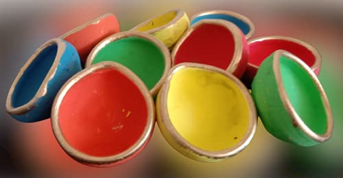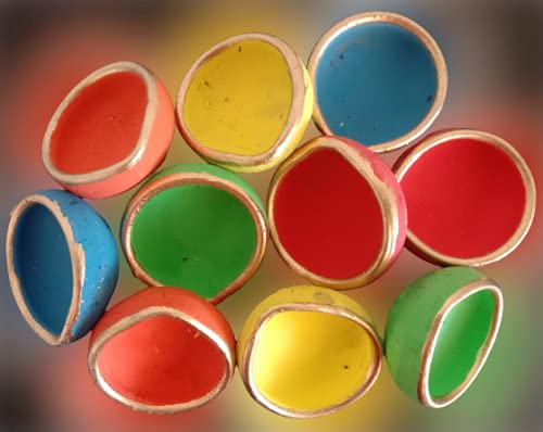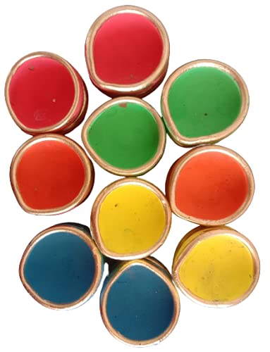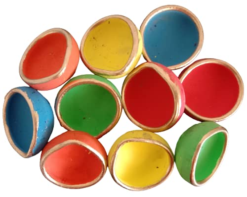 Craft Park Traditional Multicolor&Gloden Terracotta Handmade Decorative Diya, 2 Inch (Pack of 10)