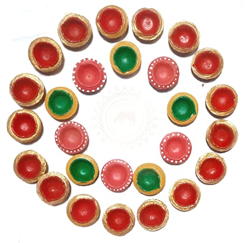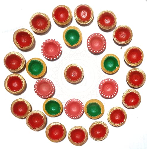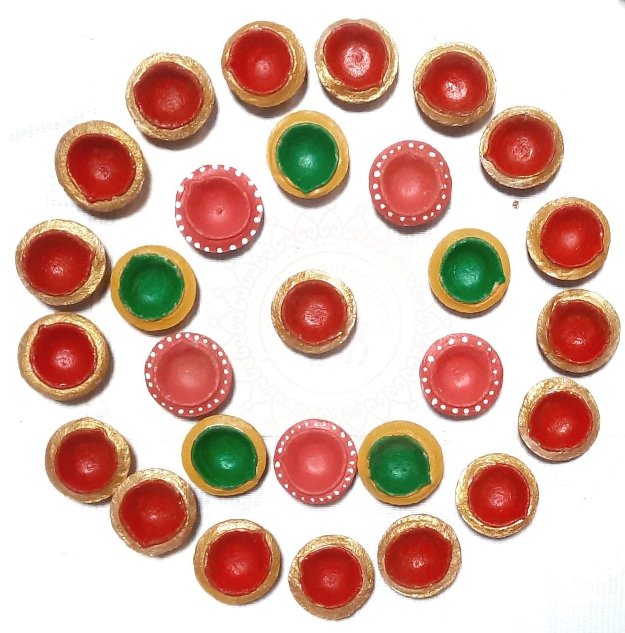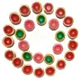 • Package contains: Pack of 24 Multicolour Gobar Diya.