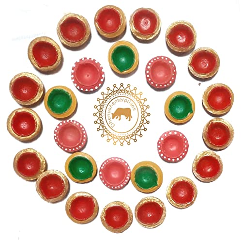 Dhenush Enterprises_ Handmade Panchgavya Cow Dung Diyas_ 24 (Multicolour)
