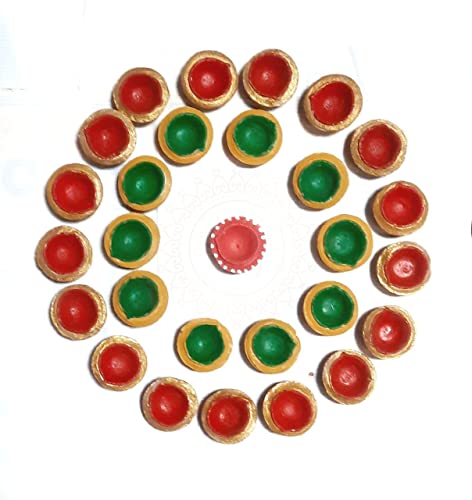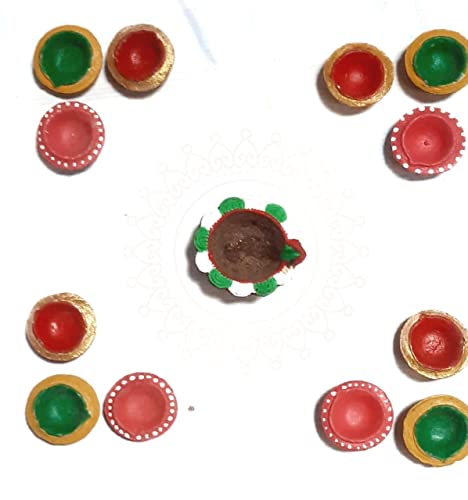 • Package contains: Pack of 32 Multicolour Gobar Diya.