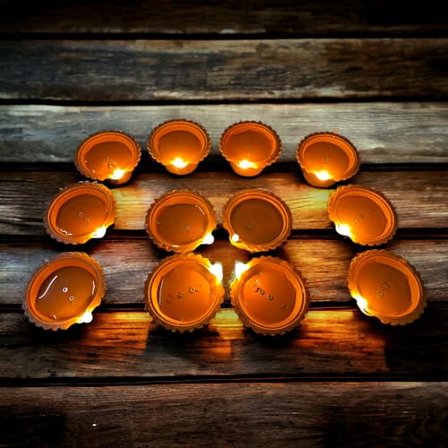 Atmaling Traders Water Sensor Eco-Friendly Led Diyas, E-Diya, Warm Orange Ambient Lights, Battery Operated Led Candles for Home Decor, Festivals Decoration (Pack of 12)