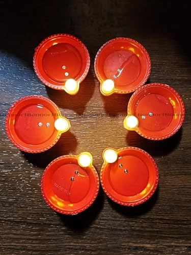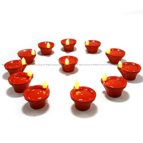 HomeHomeSpiritualEco-Friendly DiyaBennort Water Sensor Electric LED Diyas Set of 12 Plastic Flameless & Smokeless LED Diwali Light Warm Ambient Tea Ligth Candles for New Year,Festival,Christmas,Home Decoration (12)