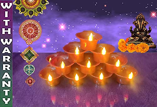 HomeHomeSpiritualEco-Friendly DiyaGenteel Water Sensor Led Light Diyas/Deepak (Pack of 12) / Flameless & Smokeless Warm Ambient Tea Light Candles for Diwali, New Year Home/Mandir Decoration (Brown) - Plastic