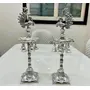 German Silver Brass Plated Peacock Samai Diya Diwali Gifts Metal Diya Handmade Indian Pooja Oil Lamp Silver Diya Lamp Akandh 5 Wick Diya Home Decor It is made from German Alloy Metal (Composition of Copper Zinc Nickel); which is finished with silver plating and "oxidized work" on its surface which gives it a "antique look". It has hand made work with beautifully hand crafting on German Alloy Metal. It is made by Metal carving work Rural India artisans who made it an accurate durable and washable product. Light up your home with this beautiful Ganesha Diya. Crafted from a quality German Silver Ganesha Figurine oil lamps add charm to the beauty. People light up these wick lamps for performing aarti of Gods they worship. These are also used as Diwali lights. Made in brass this is a solid piece of collectible figurine sculpture that you would be happy to keep at your home. Gift your loved ones this attractive Diya for special occasions. The premium bell has beautiful sound and is an essential for temple at home. This product is crafted from brass that is considered to be a sacred metal and traditionally used in prayer accessories. The sweet sound of this bell will fill the atmosphere with divine sound during any pooja / ceremony. German Silver Ganesha Samai Diya Diwali Gifts Metal Diya Handmade Indian Pooja Oil Lamp Silver Diya Lamp Akandh 5 Wick Diya Home Decor Illuminate your home with the enchanting beauty of our German Silver Hand-Engraved Peacock Samai/Diya with Bells. This exquisite piece combines traditional craftsmanship with elegant design creating a mesmerizing addition to your festive decorations or everyday ambiance. Crafted with meticulous attention to detail our samai/diya showcases the artistry of skilled artisans. Made from premium German silver it boasts a radiant shine and durability that will withstand the test of time. The intricate hand engravings on the surface depict a graceful peacock motif symbolizing beauty prosperity