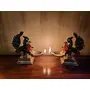The peacock metal Diya is are designed to complement your home interiors. Based on a stylized peacock design the metal has been treated to form a gold colored base but with a semi precious stone work. Full metallic peacock diya with semi precious stone work. Used as diya in your temple as well is a beautiful decor piece...for your entrance or small nishes of your home.100% Guaranteed will not get black in any weather no matter how you use it This product is crafted from brass that is considered to be a sacred metal and traditionally used in prayer accessories. The sweet sound of this bell will fill the atmosphere with divine sound during any pooja / ceremony. German Silver Ganesha Samai Diya Diwali Gifts Metal Diya Handmade Indian Pooja Oil Lamp Silver Diya Lamp Akandh 5 Wick Diya Home Decor Illuminate your home with the enchanting beauty of our German Silver Hand-Engraved Peacock Samai/Diya with Bells. This exquisite piece combines traditional craftsmanship with elegant design creating a mesmerizing addition to your festive decorations or everyday ambiance. Crafted with meticulous attention to detail our samai/diya showcases the artistry of skilled artisans. Made from premium German silver it boasts a radiant shine and durability that will withstand the test of time. The intricate hand engravings on the surface depict a graceful peacock motif symbolizing beauty prosperity