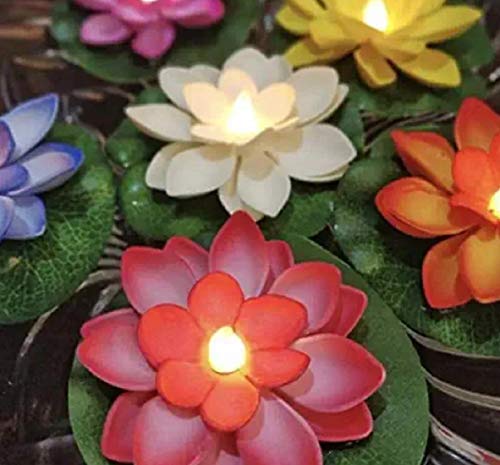 GHAR SHRINGAAR Lotus Flower Floating Diya Set with Water Sensor (Set of 6) | Multicolour | Artificial but Natural Looking Flower with led Light, Best for Diwali Purpose, Decorations