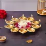 About product:Brighten up the dull and boring ambience of your living room with this shadow tea light holder. These Lotus Candle holder will not fail to leave a lasting impression on your guest. Made from metal this wonderful piece of art will surely accentuate your home decor. It serves as a great gift especially around religious celebrations and festivities. Each tea light holder is diligently handcrafted by skilled artisans from the house of Heaven Decor using various traditional techniques It is made from sheet with excellent attention to detail finished in Gold. It is quite easy to carry and safe to use.Quality MaterialThe unique artefacts are professionally handcrafted in sturdy metal with adequate size to capture the premium corner or shelf or any tabletop and evoke the decor vibes.DimensionsPerfect Size: 12 inches x 12 inches x 3 inches (LxWxH). An ideal size that can be placed in every corner or centre of the space.An Ideal Gift OptionFall in Love with this beautiful decorative bowl can be a perfect gift for any occasion. The best idea Thanks giving or return gifts for special occasions and ceremonies like house warming marriage birthday anniversary etc.Item Shape: Round Metal Flower Decoration Urli Bowl For Home Decor