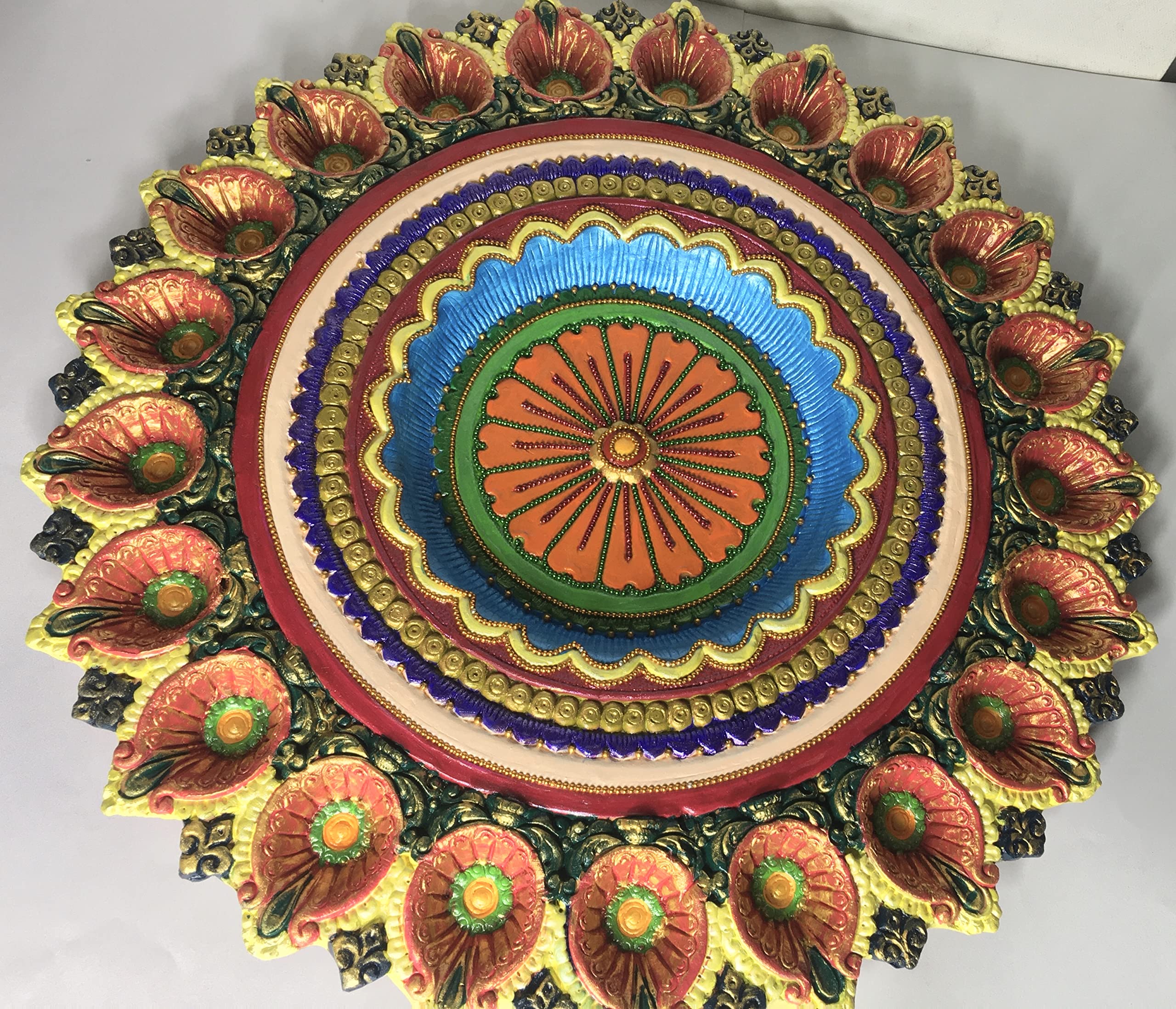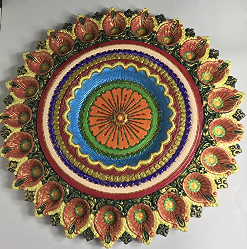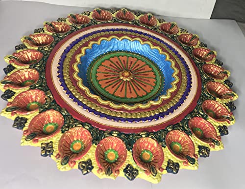 Handmade Terracotta Earthenware Big Thali of 21 Diya for Any Puja Diya for Home Decor, Diwali and Navratri