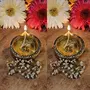 Indian Diwali Oil Lamp Pooja Diya Brass Light Puja Decorations Mandir Decoration Items Table Home Backdrop Decor Lamps Made in India Decorative Wicks Diyas Shri Swastik Laxmi Vilakku Set of 10 - Gold