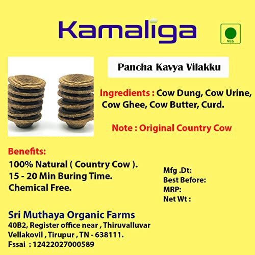 Kamaliga Pancha kavya Vilakku/Deepak- Pack of 5 (Big Size)| Cow Dung, Cow Urine, Milk, Curd and Ghee (Country Cow) for Daily Puja, Festivals, Navaratri, Diwali | 100% Natural