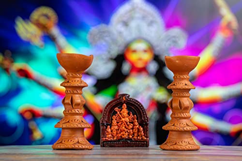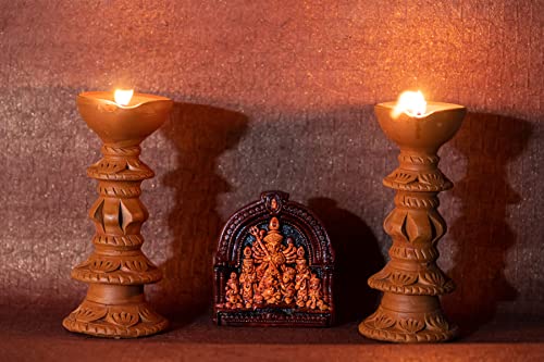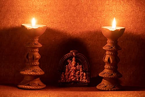 This diya will enhance your home decor and holiday festivities. Traditional handmade earthen clay diyas a splash of colour to your home. Use them instead of decorative lights to brighten your home during the festival. Made of clay natural colours no artificial colours added 100% environmentally friendly. A one-of-a-kind terracotta diya for your puja room. Handmade item with a unique design. A fantastic option for everyday use at home. The product is washable and comes in a natural terracotta colour. The design can protect the flame from the elements.