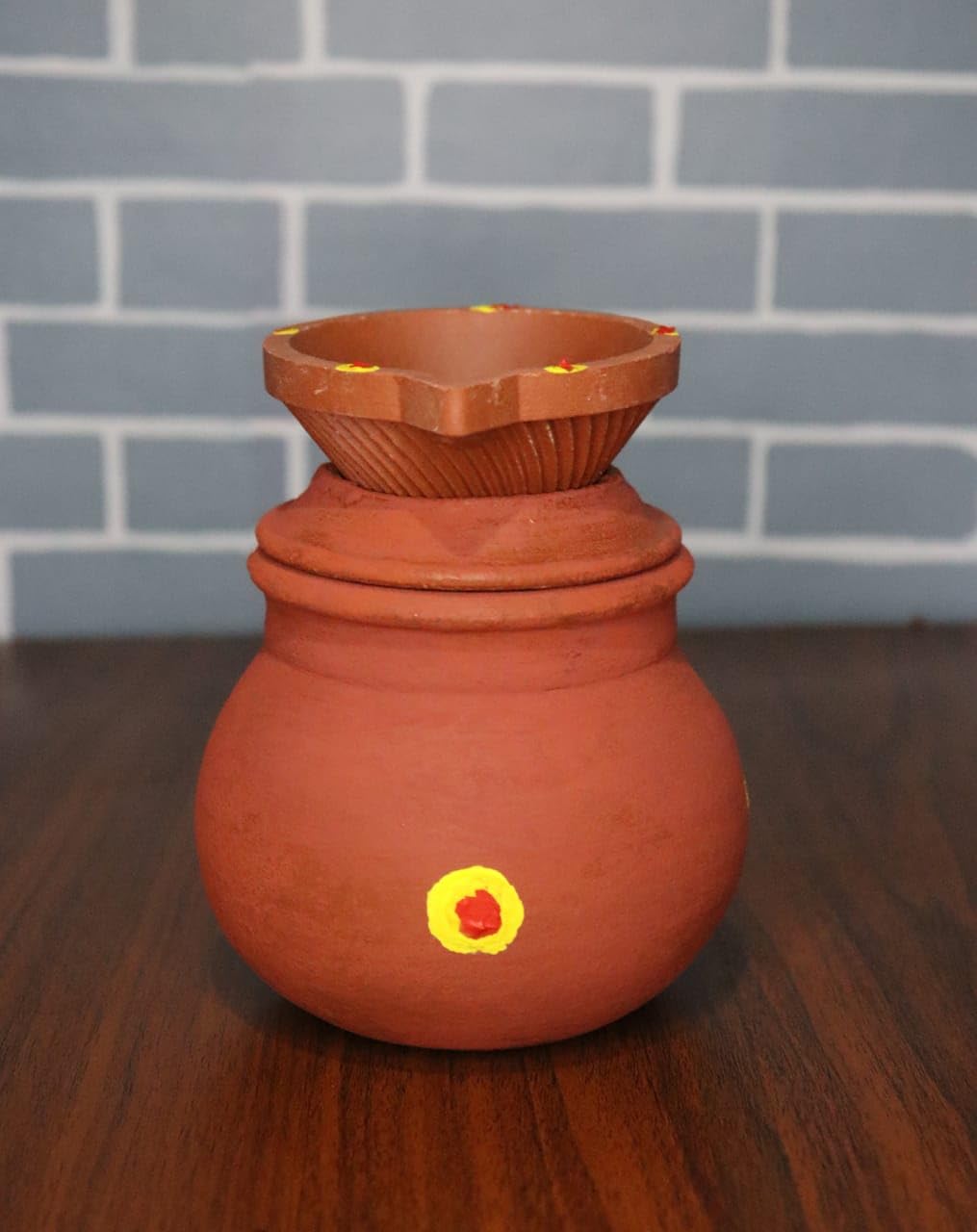 Clay diyas are symbolically lit during prayers rituals and ceremonies; they are permanent fixtures in homes and temples. The warm bright glow emitted from a diya is considered auspicious - it represents enlightenment prosperity knowledge and wisdom Diyas are manufactured by rural potters. And its making by terracotta method