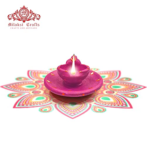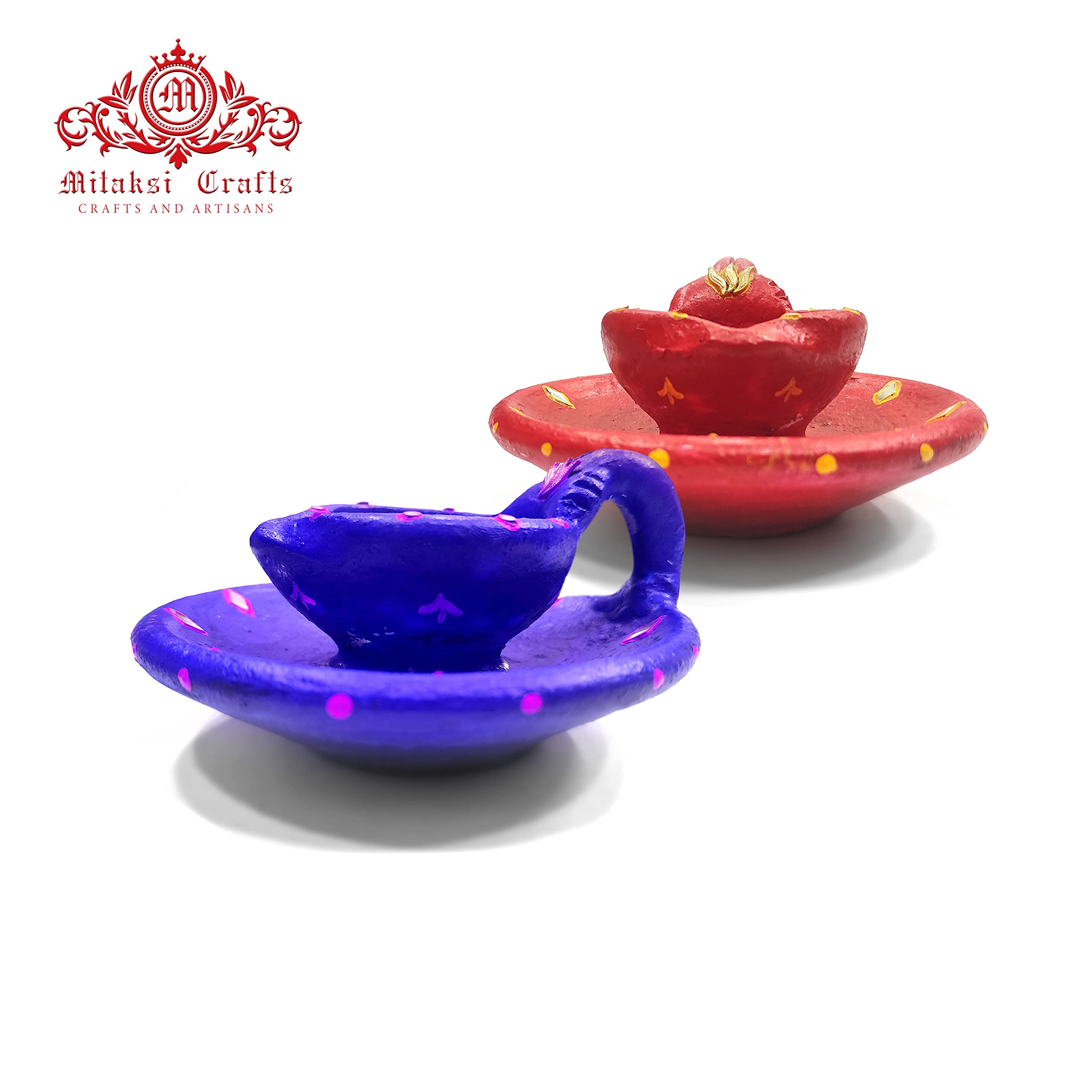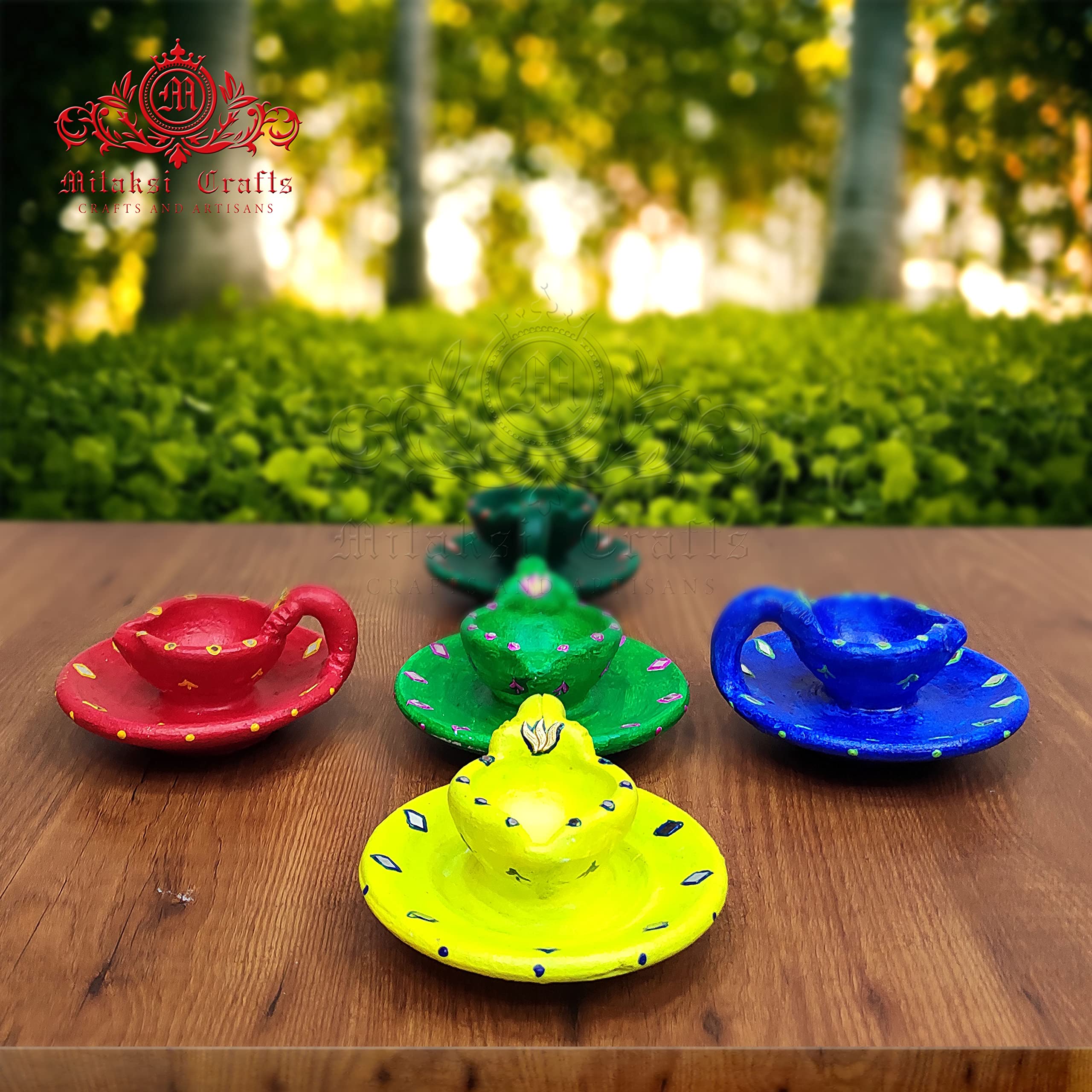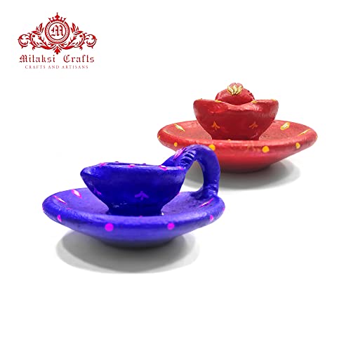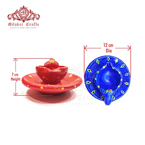 MITAKSI Crafts Aarthy Diya - Holi - Festival - Diwali - Havan - Mandir - Temple - Colourful - Divine - Mitti ka Diya - Deepa - Deepam - Diya - Terracotta - Clay -Assorted Colours - Pack of 2