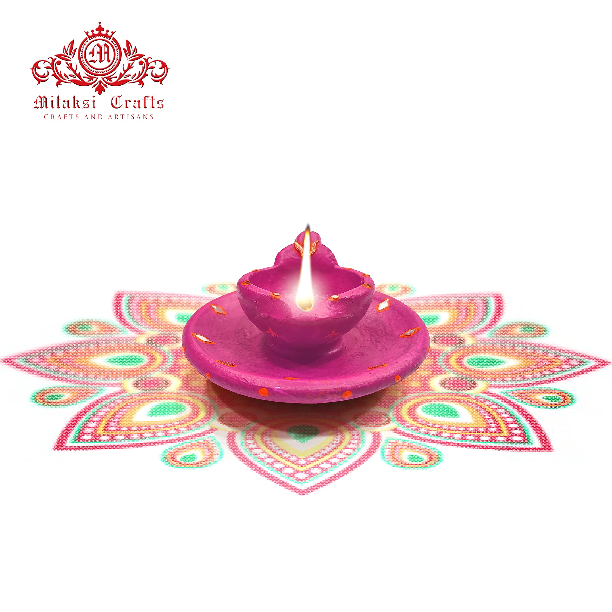 You can place our beautiful diya lamps/ Diya's on your doorstep window/balcony ledge office garden or use it to compliment your rangolis. also your can use this beautiful diya for diwali gifts.