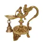 Mohan Jodero Peacock Deepak/ Diya with Bell Antique Golden Home Decorative for Temple & Festival