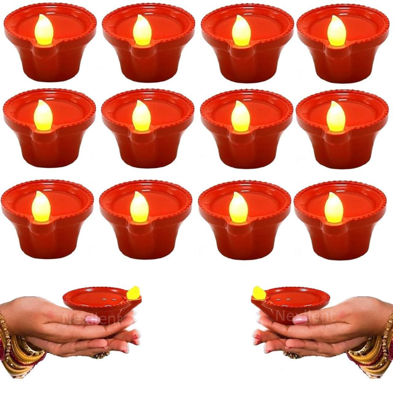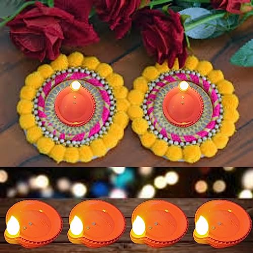 Led Lighted so they are Flameless and Smokeless that makes them pollution free. You can use them for your traditional events festivals wedding parties or any such special occasions. You can Keep them Lighted or switch it off when not required and then Switch back on. These Diyas come with button-batteries that are easily replaceable after the batteries dies. Decorate your Home on special occasions with this set of Water Led Diya's that are Smokeless and Flameless. These led lighted Diya's let you light any corner of your home since you don't have to worry about fire and Flame Precisely designed so that it looks very similar to clay Diya. You can use them for your traditional events festivals wedding parties or any such special occasions. battery-operated diyas are powered by 3 button cell (LR44) 357 1.5V each (installed and included) that will last at least 50+ hours.