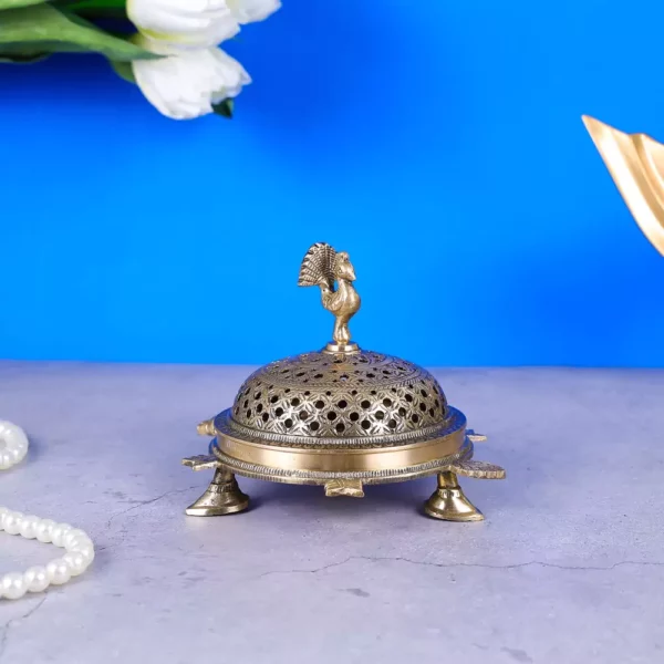 Introducing the Peacock Motif Loban Lamp, a masterpiece made of authentic brass that adds elegance to any space.