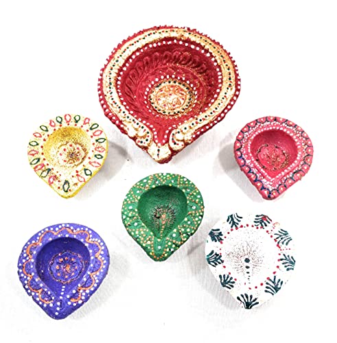 USES / OCCASION For Puja Corporate Diwali Gifts for Employees Clients Family and Friends Diwali Pooja Home decor Diwali decoration temple birthday gift wedding gift anniversary gift engagement gift baby shower gift Hindu god gift Diwali gift teachers gift thank you gift home decor house warming business gift Diwali gift box mother's day father's day new year retirement wedding. DIYAS - LIGHTS DECORATION Make your sweet home more sweet with this special colorful diyas / lamps.This decorative handmade Diya gives a royal and beautiful look to your home and surprises your friend and guests. The product is useful throughout the year. It is best to be used during festivals griha-pravesham spiritual decors weddings receptions inaugurations cultural events hotel decorations shooting etc. HANDMADE OIL LAMPS - MULTIPURPOSE This product is used for lighting lamp diya with using the cotton wicks. It is an integral custom or tradition to start all the auspicious events by lighting the lamp to create a spiritual atmosphere. This Oil Lamp is being made by the hands of Indian Kumbhar (Pottery) in traditional methods. It is an excellent enhancement for modern home decoration. PERFECT GIFT OPTION: Gifts: Diwali gift box Navratri gift birthday gift anniversary gift wedding gift mothers day gift fathers day gift festival gift box rakhi gift holi gift special gift box.Colorful files lamps home decor is a great gifting option Too - both to self and to others. To cover a wide wall entrance gate or stage wall the product can be put in multiple quantities thereby getting a beautiful classic look.