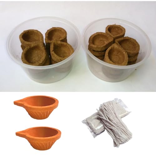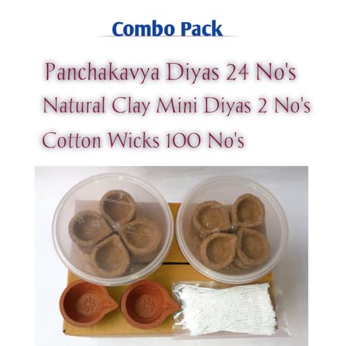 Country Cow Panchakavya Deepam/Vilakku/Pure Natural Cow Dung Diyas/Puja Deepam 24 Pieces (Cotton Wicks 100 No's) (Natural Clay Mini Diyas 2 No's) Combo Pack