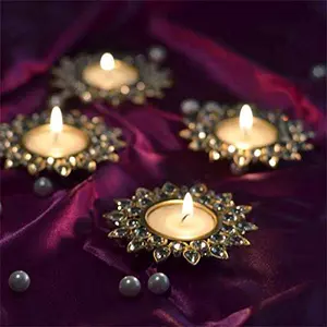 Crystal Diya with Tea Light Gold...