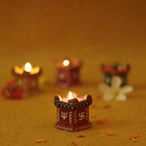 Perpetual Tulsi Diya for Diwali Decoration Handmade Earthen Clay Terracotta Decorative Diya 4 Pcs Set Tealight Candle Festival Diya Oil Lamps.