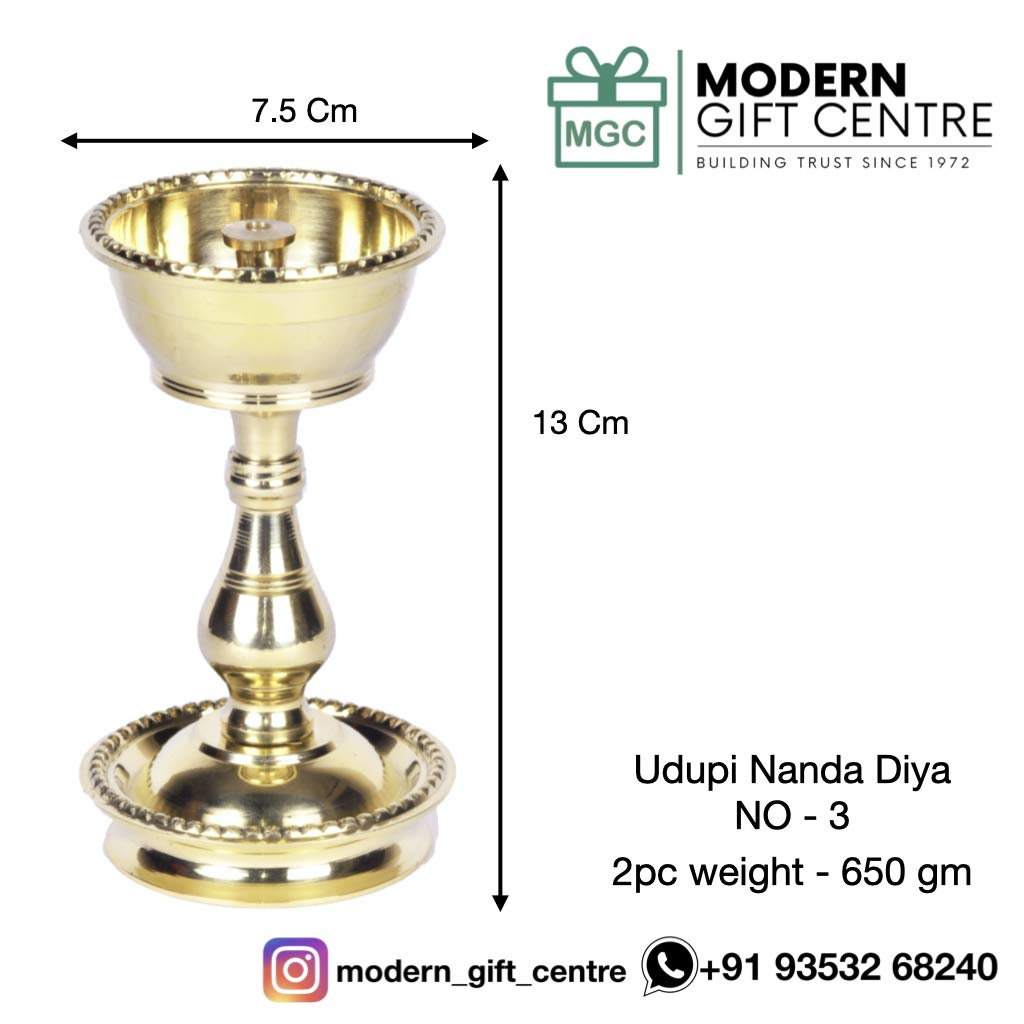 Modern Gift Centre brings to you Udupi Nanda brass diya . Light up your home with this artistic beautiful Religious Brass diya. These are made of fine quality brass. We offer beautifully designed diya. These are flawless designed and display the exquisite beauty of metal crafting practiced by our artisan.